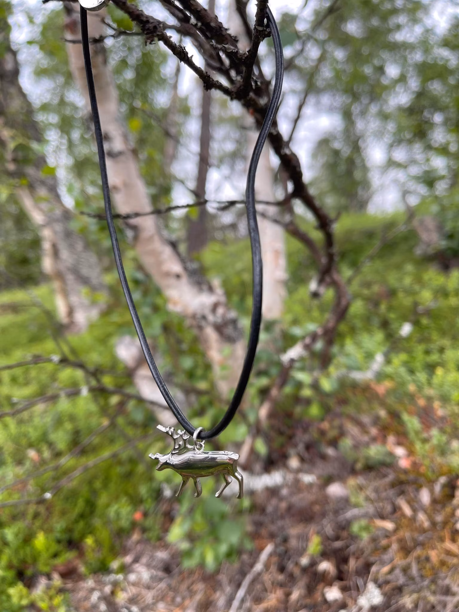 Leather necklace 42cm, Charm in surgical steel, Reindeer